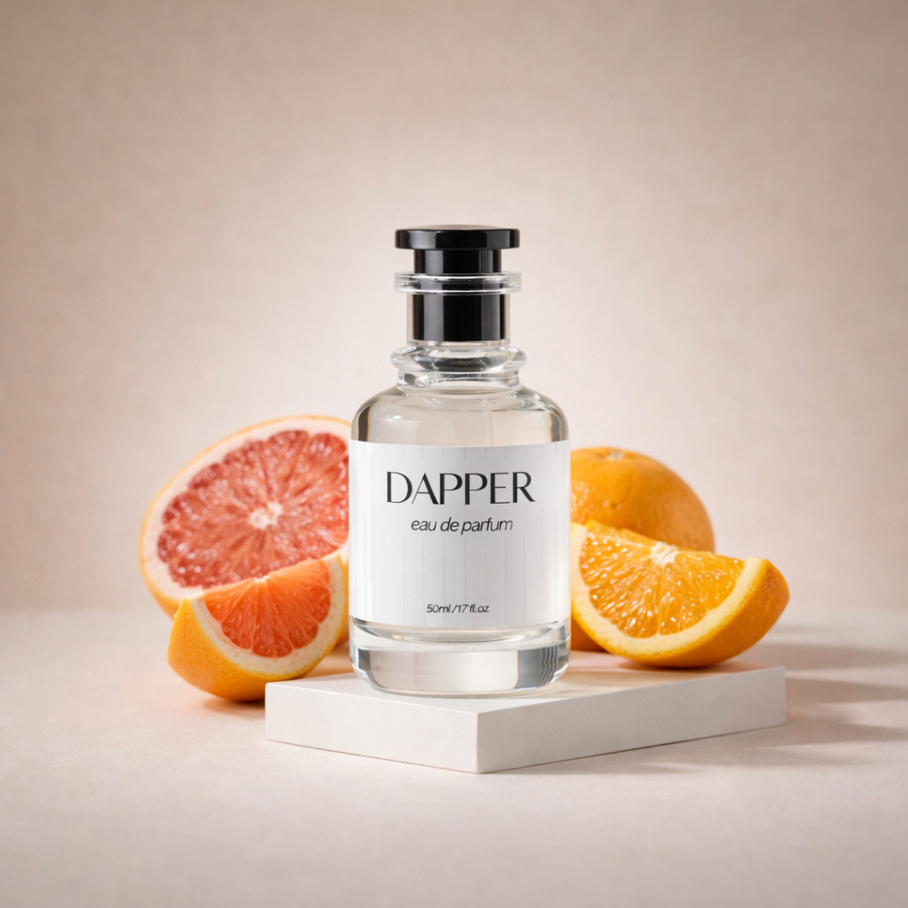 Dapper begins with fresh orange and grapefruit, evolving into smoky wood, vetiver, and cedar. A fragrance of quiet strength and nature's enduring warmth, grounding you with every breath.